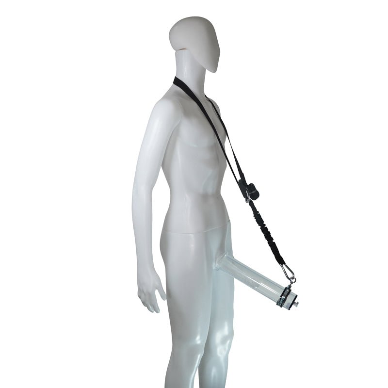 - Cylinder Adjustable Bungee Support - This can be attached around the waist or shoulder to hold the pump at the perfect angle for optimal vacuum pressure and comfort. Plus the bungee feature allows you to use the Vibration Hanger for additional results!